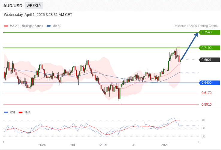 Current Rate: 0.6964 | February High: 0.7094 | Sentiment: Hawkish Bullish